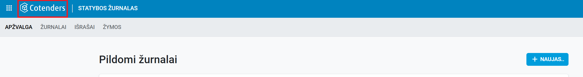 Norint sugrįžti į pagrindinį sistemos langą Pildomi žurnalai, kuriame matote visus pildomus žurnalus reikia viršutinėje mėlynoje meniu juostoje paspausti ant užrašo Cotenders.